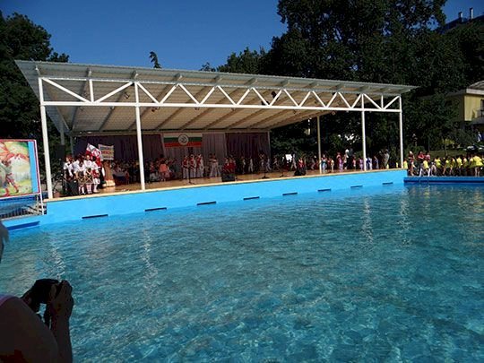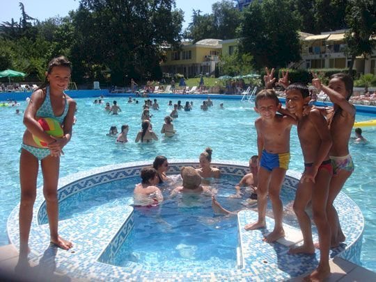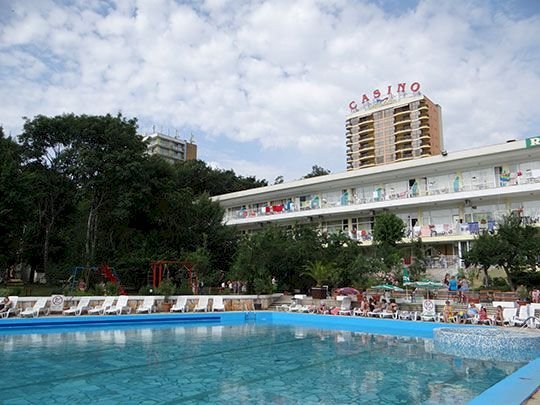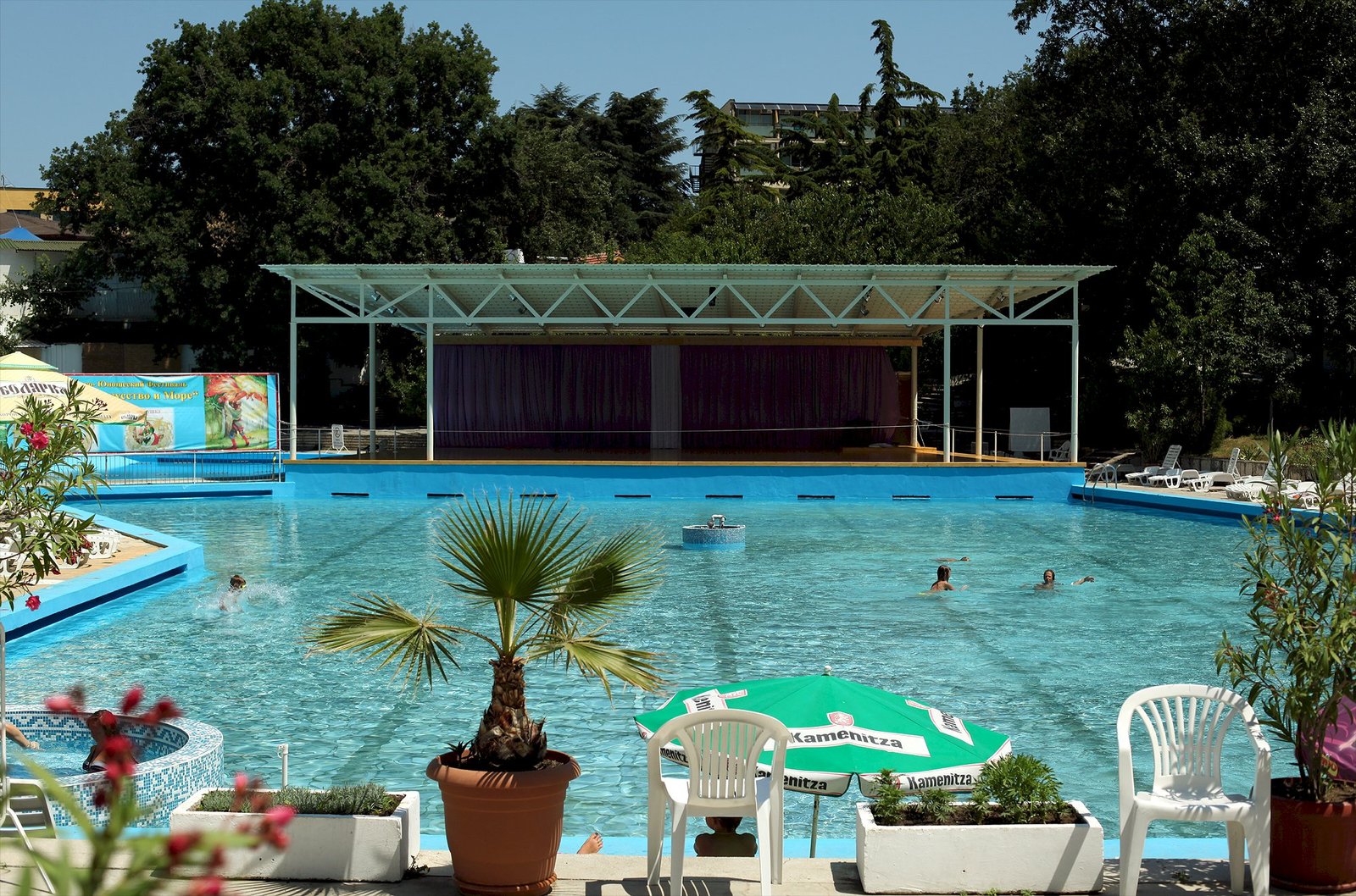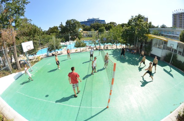 Na terenie hotelu znajduje się największy odkryty basen w Złotych Piaskach, mniejszy basen rekreacyjny, rozległy ogród oraz boiska sportowe (do siatkówki, koszykówki i piłki nożnej). Do dyspozycji gości są również leżaki i parasole, jacuzzi, duża scena z profesjonalnym nagłośnieniem oraz przestronna sala restauracyjna. Hotel organizuje animacje, które umilają czas uczestnikom obozu.