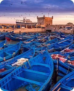- Śniadanie w hotelu. Wycieczka do nadmorskiego miasta Essaouira (około 2 godziny 45 minut jazdy). Po drodze wizyta w kooperatywie produkującej olej arganowy. Na miejscu czas wolny na zwiedzanie medyny, spacer po plaży oraz odkrywanie lokalnych kafejek i sklepików. Essaouira zachwyca swoją architekturą i nadmorskim klimatem. Powrót do Marrakeszu wieczorem.
