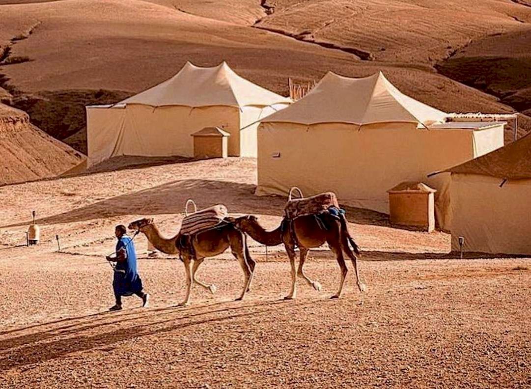 - Śniadanie w hotelu. Wyjazd na pustynię Agafay, oddaloną zaledwie o godzinę jazdy od Marrakeszu. Czeka nas malownicza sceneria pustynnych wzgórz i widoków na góry Atlasu. Na miejscu dla każdego uczestnika przejażdżka na wielbłądach i emocjonująca jazda quadami. Po aktywnościach relaks i tradycyjna kolacja na pustyni w niezwykłej, spokojnej atmosferze. Powrót do Marrakeszu w godzinach popołudniowych. Wieczór wolny.