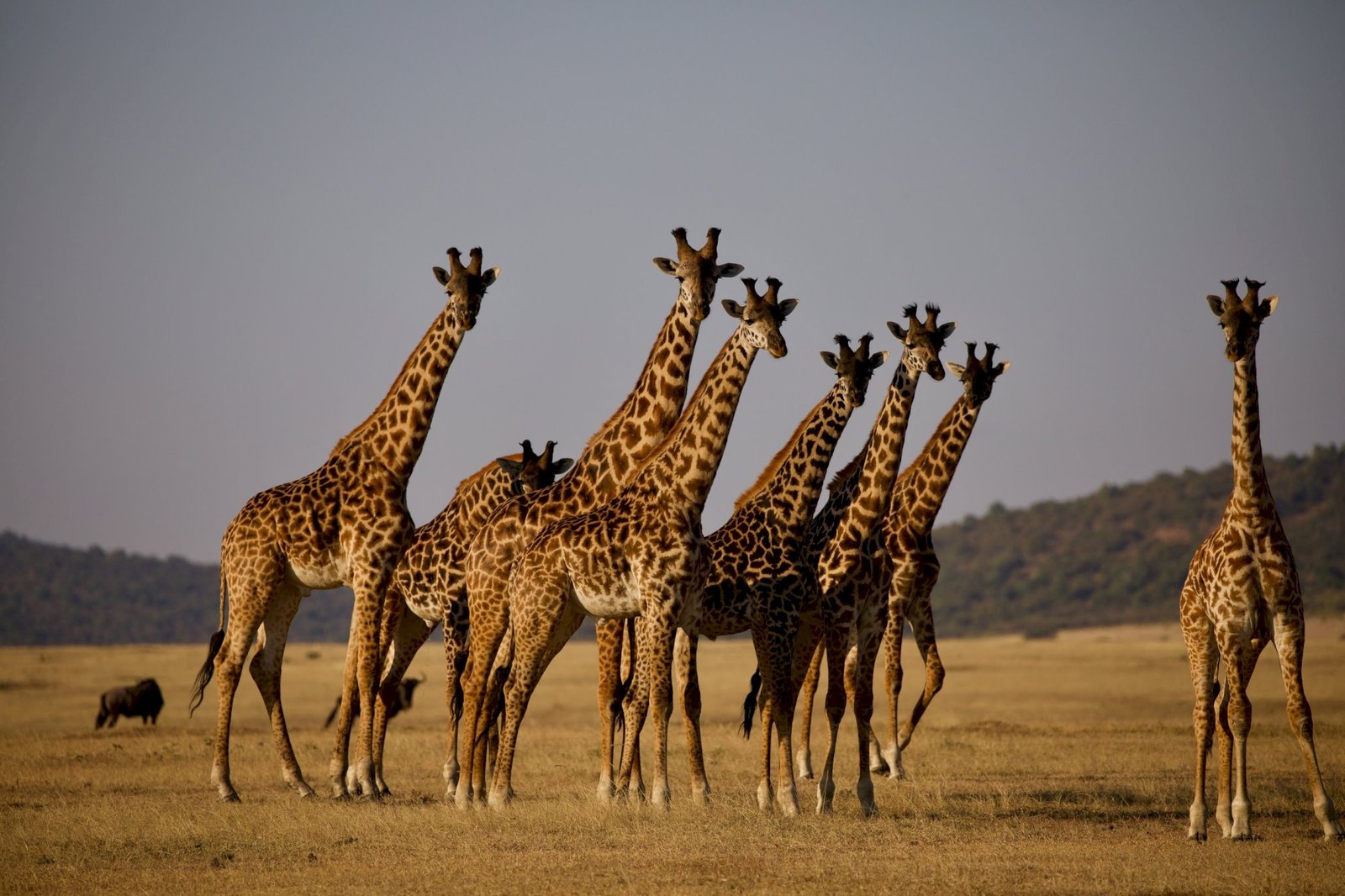 - Bawoły, żyrafy i zebry pasące się na rozległych trawiastych terenach.